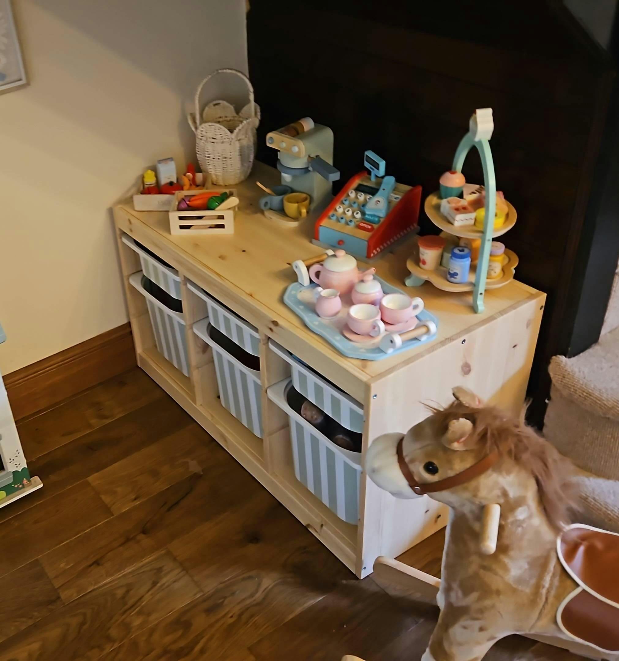 Love these trofast transfers, put them on my daughters crafting boxes, makes them look neater in my living room, but still gives her the space she needs for arts and crafts