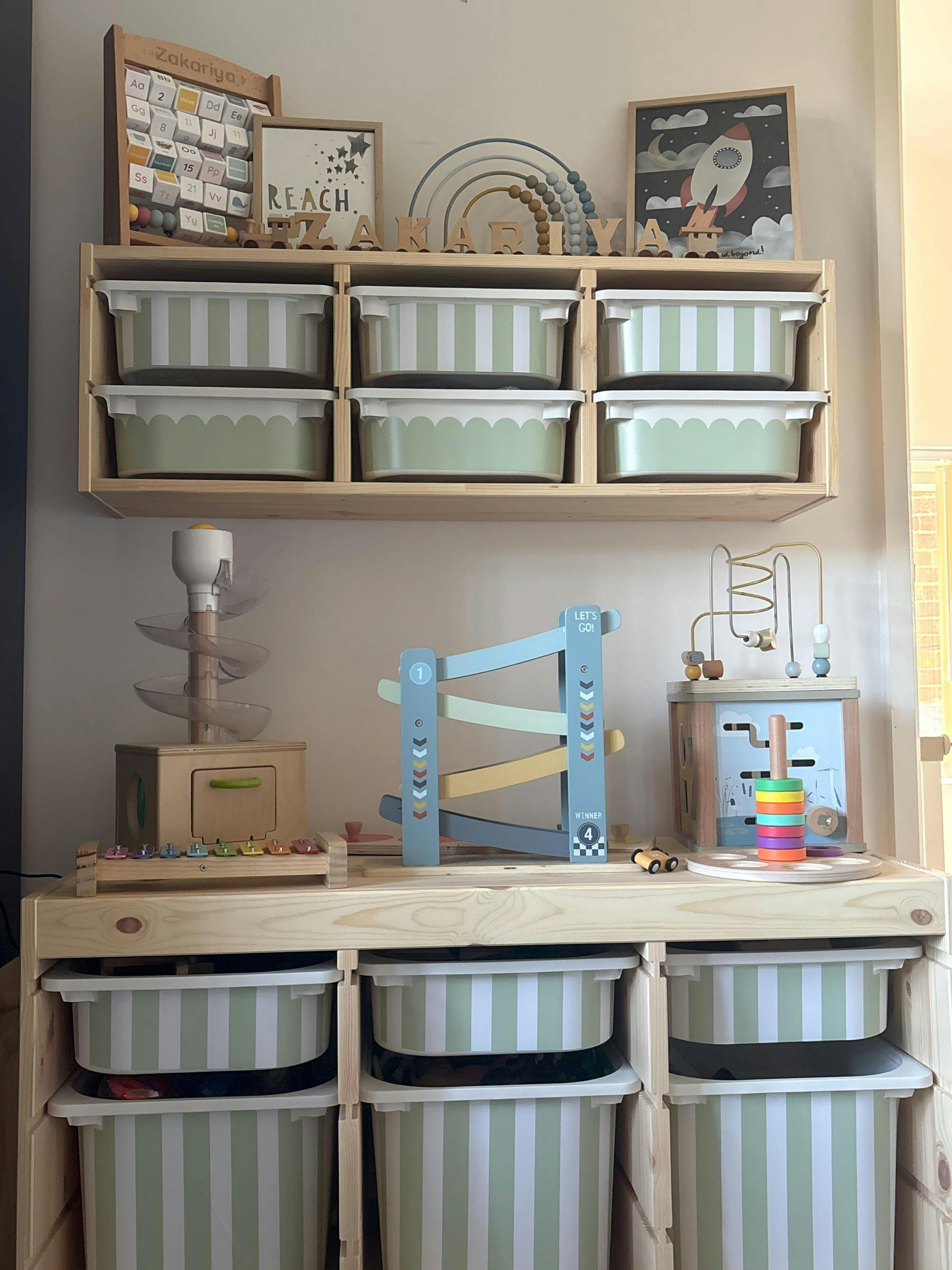 We’ve used these stickers to transform our trofast unit. It’s made such a difference to our space and i love that they are interchangeable and we can switch them around / mix and match the designs.