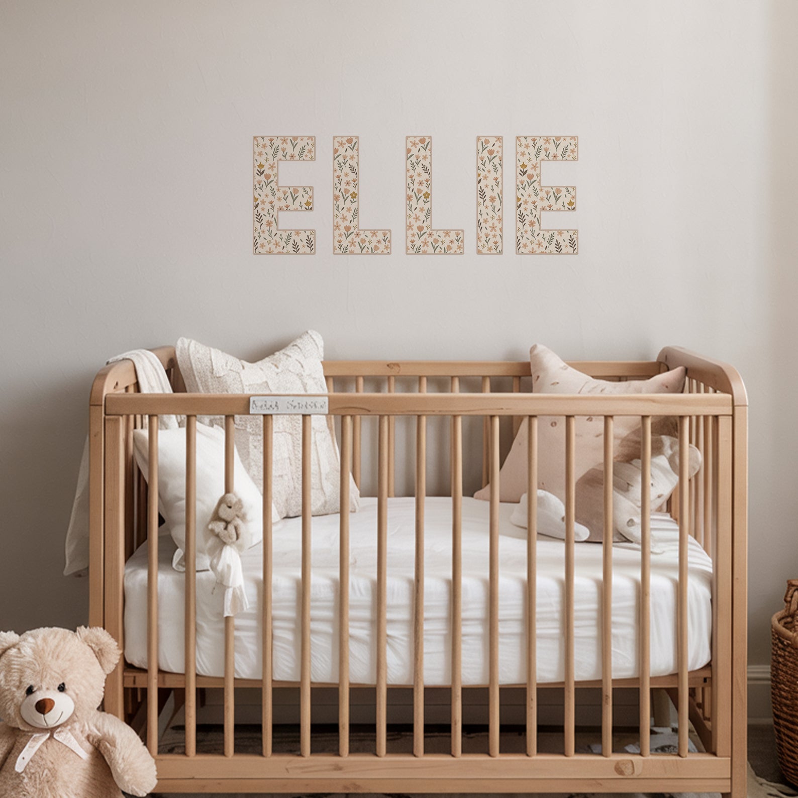 Each letter features a delicate, hand-illustrated floral pattern in warm neutral tones, making them perfect for calm nurseries, toddler rooms and stylish play spaces alike. Whether you’re spelling out a name, initials, or the full alphabet, these letters create an instant focal point without overwhelming the room.